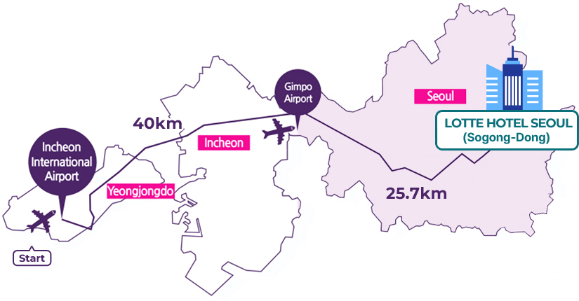 | Gimpo Int’l Airport -> LOTTE HOTEL SEOUL (Sogong-Dong) |
